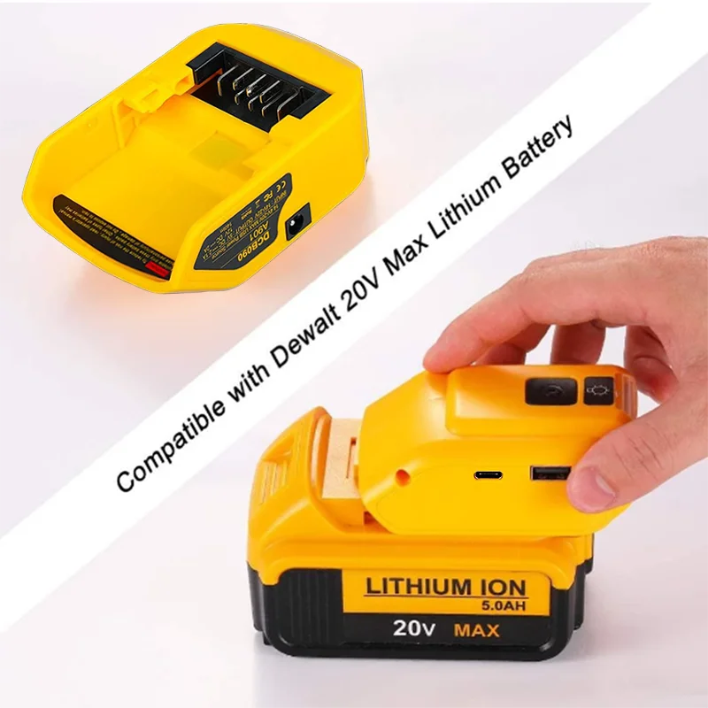 Адаптер для аккумулятора Dewalt, 18 в, 20 в, макс., аккумулятор DCB090 с портом USB C, DC и светодиодным рабочим источником питания, зарядное устройство (только для инструмента)