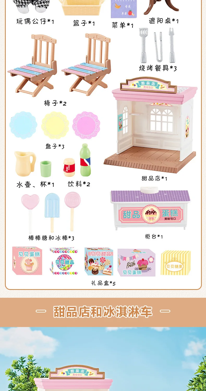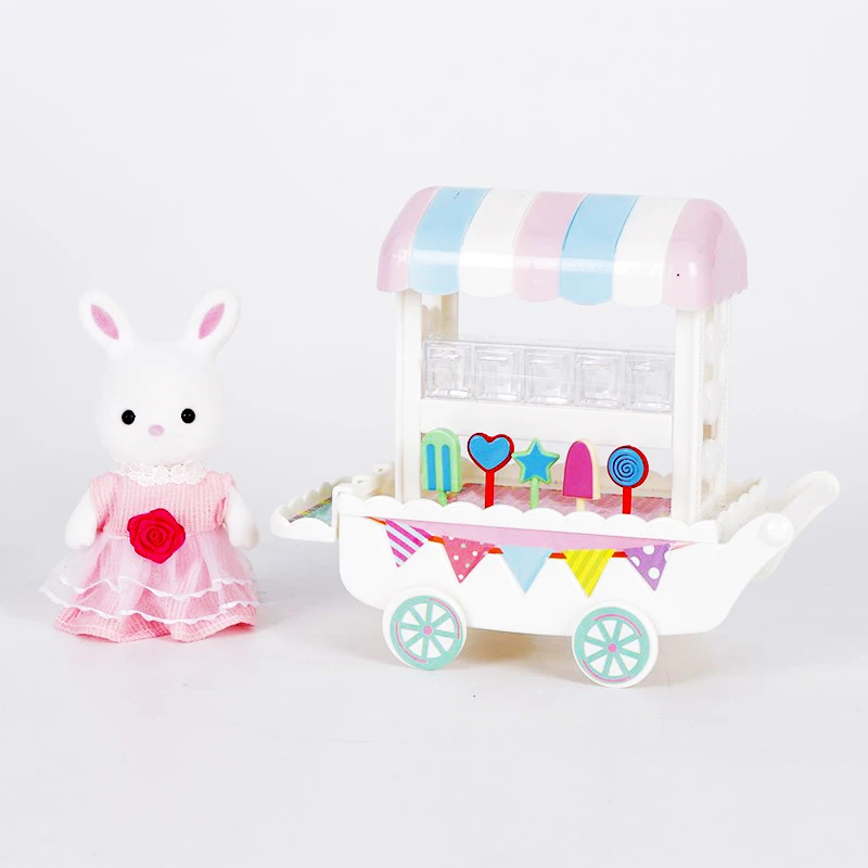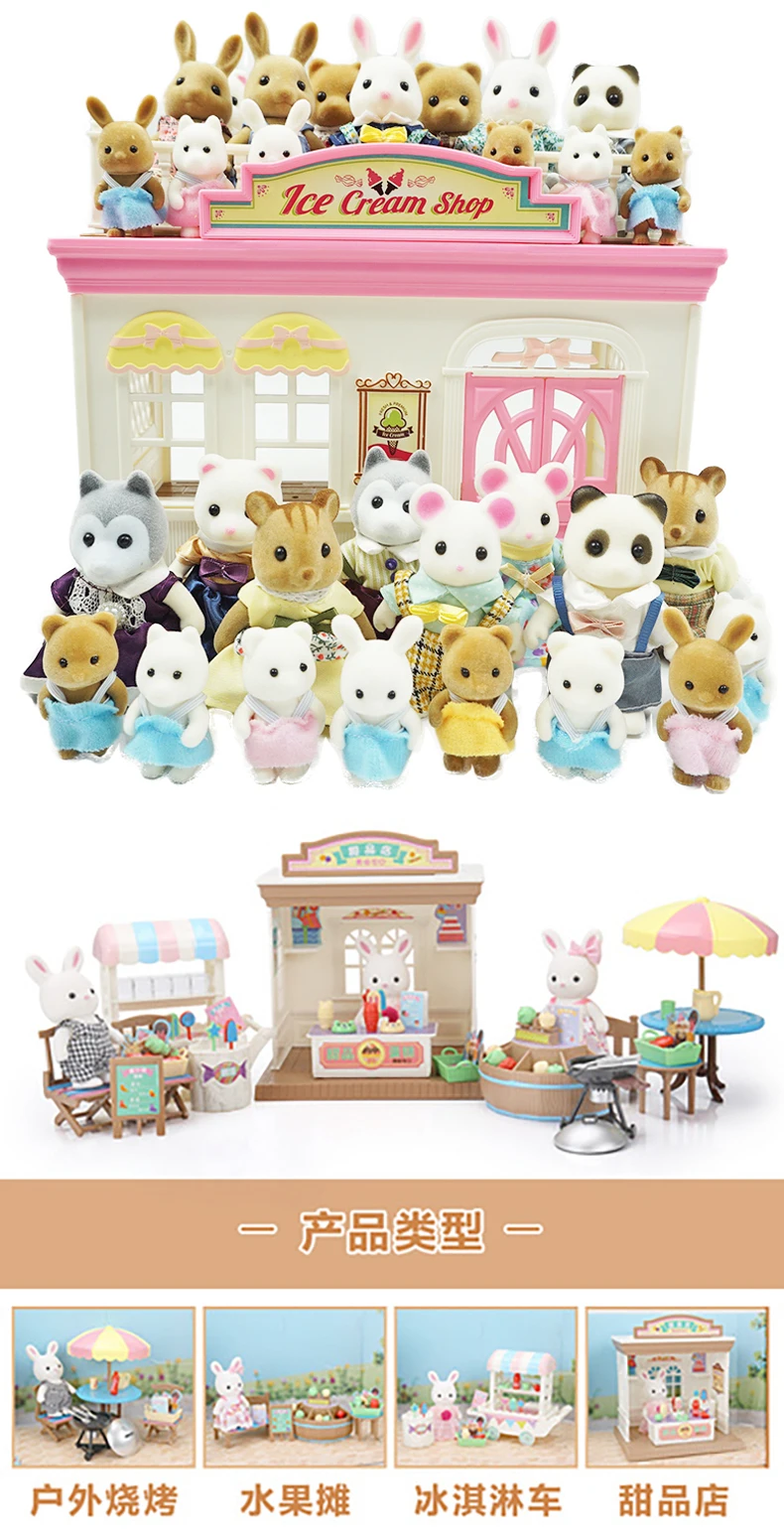 Игрушка для девочек, игрушка для семьи в виде лесных животных 1:12, уличная игрушка для барбекю, кролик, подставка для фруктов, тележка с мороженым, кукла с мебелью