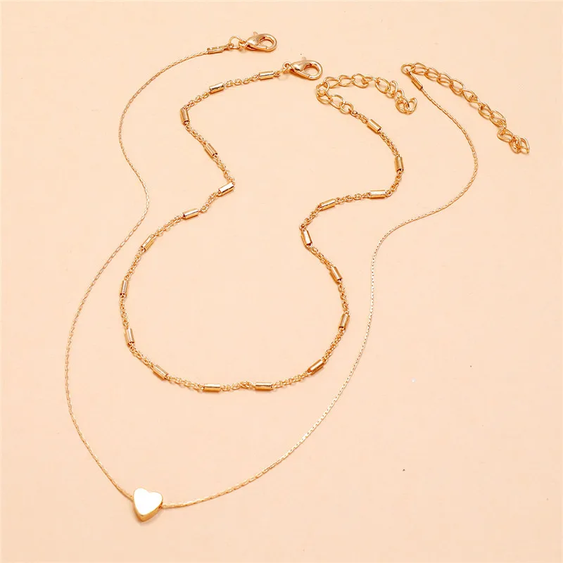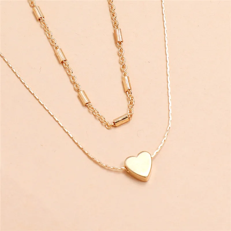 WUKALO простое модное женское ожерелье до ключиц для женщин многослойная цепочка золотого цвета ожерелье с подвеской в форме сердца ожерелье