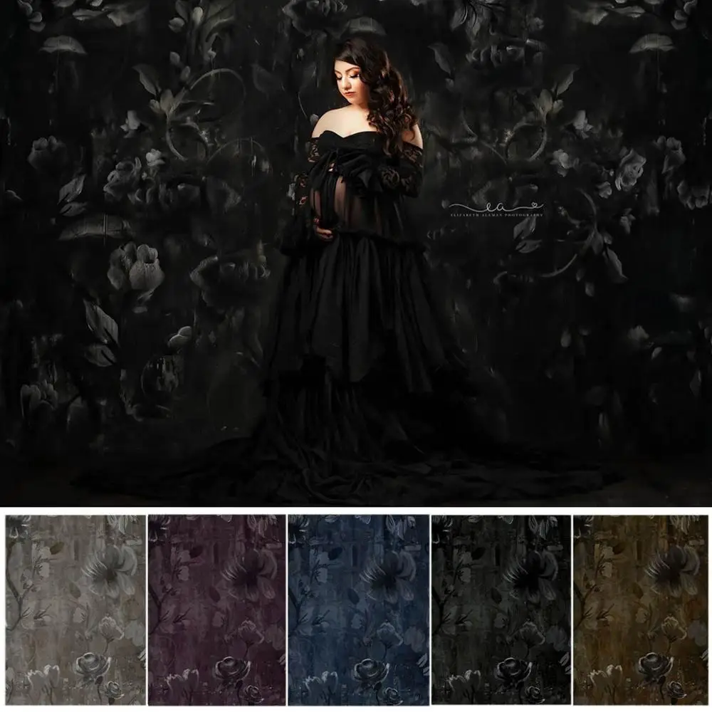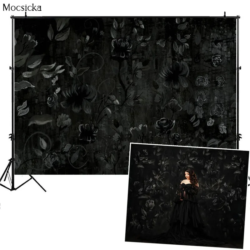 Mocsicka черный фон для фотосъемки с абстрактной текстурой и цветами для беременных женщин художественный портретный фон для фотостудии декоративный реквизит
