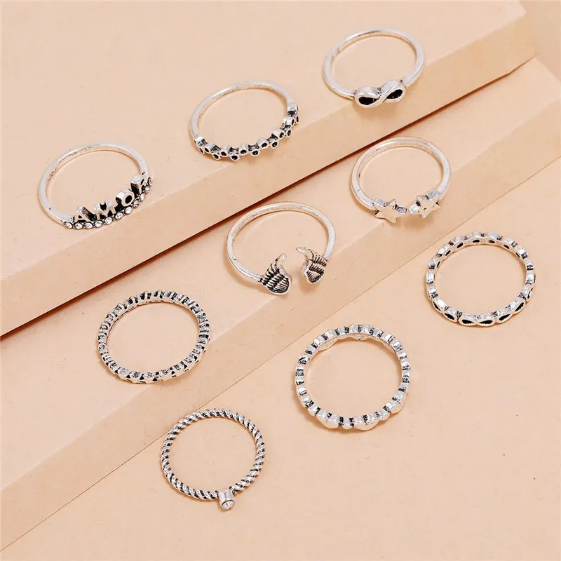 9 шт.компл. женское модное серебряное кольцо, изысканное крыло, бес...