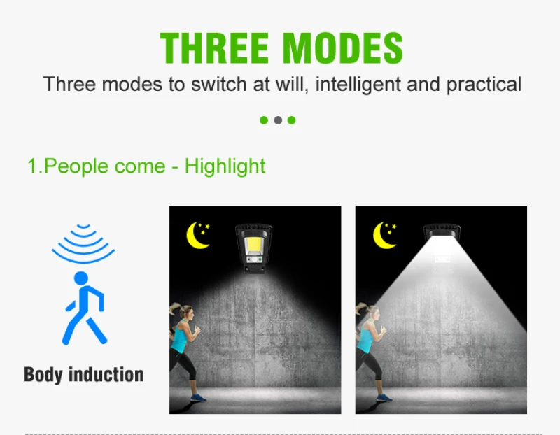 -Автоматическое включение: датчик движения PIR может сканировать источник тепла, который непрерывно перемещается в пределах диапазона обнаружения. Когда кто-то появится в области, светильник автоматически включится.
