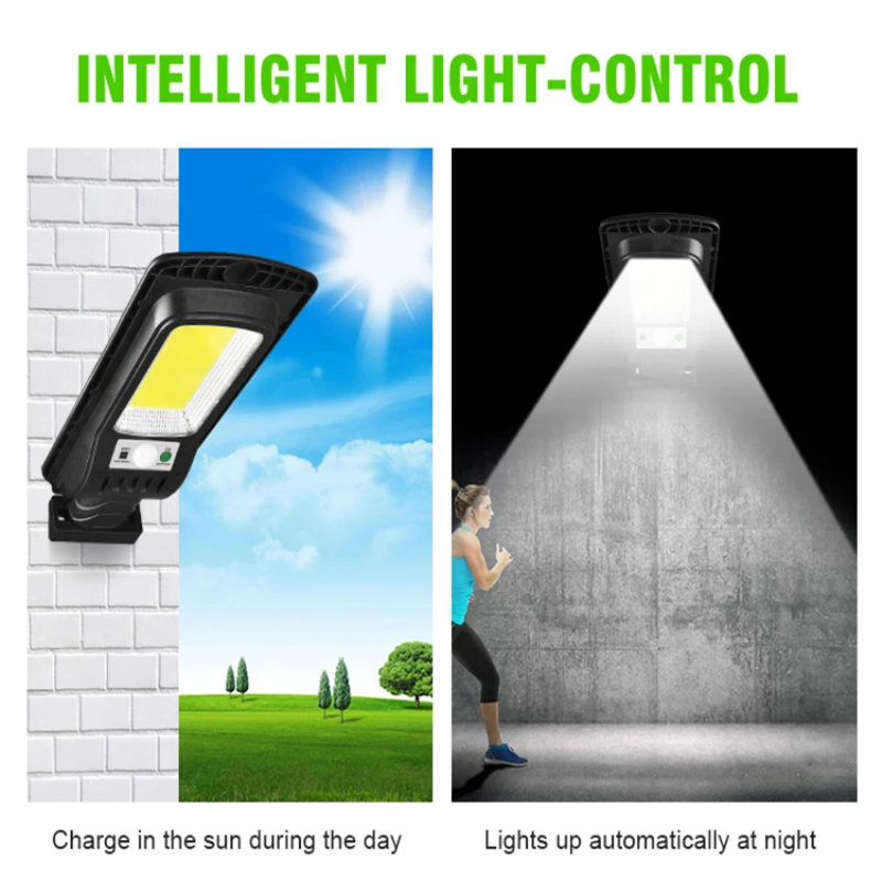 COBсветодиодный солнечный светильник уличный светильник на солнечной энергии с безопасности уличный светильник s настенный светильник Водонепроницаемый движения PIR Сенсор интеллектуальный пульт дистанционного управления Управление лампа