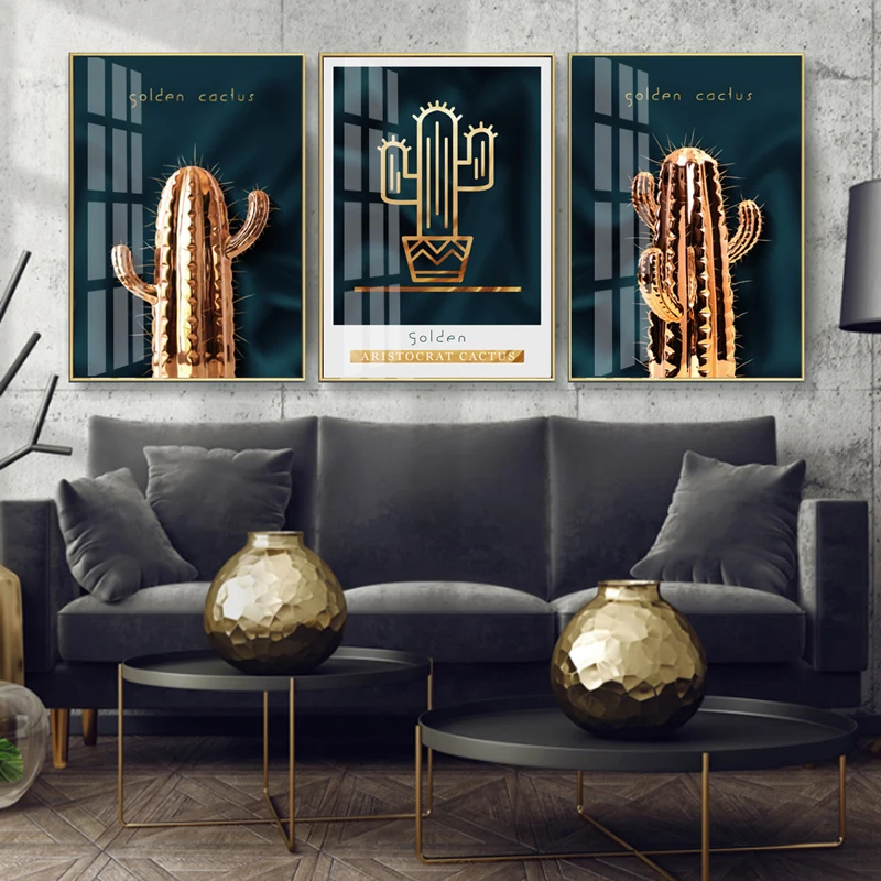 Скандинавский абстрактный Золотой постер С КАКТУСОМ из плотной ткани, Декоративная Настенная картина без рамки печати Современное украшение для дома, для Гостиная Спальня
