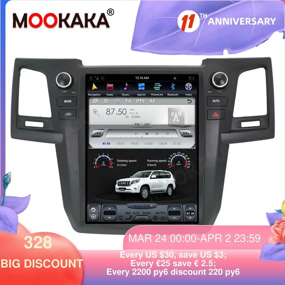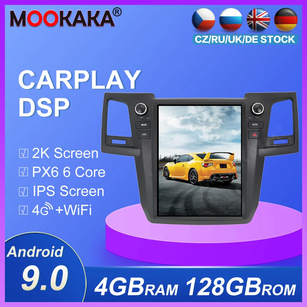 Автомобильный GPS-навигатор Tesla style, 128 ГБ, Android 9,0 для Toyota Fortuner Hilux Revo 2005-2014, автомобильный радиоприемник ManualAC px6