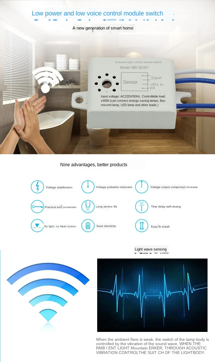 Новый 220 в звуковой голосовой датчик переключатель автоматический ...