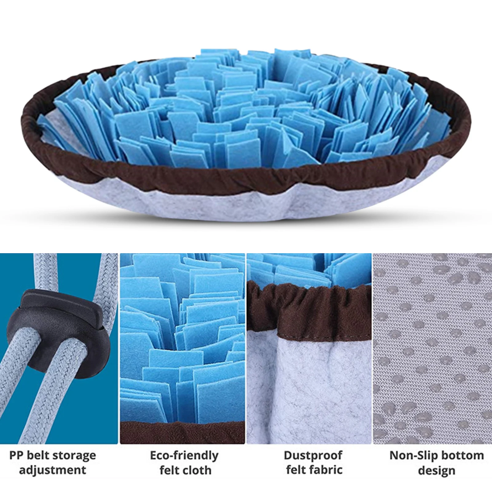 1. Хорошо известно, что слишком быстрое питание не подходит для здоровья собаки. Этот коврик для кормления собак может способствовать естественному кормлению собак, эффективно замедляя скорость кормления питомца и предотвращая проблемы с пищеварением. Яркие цвета также могут стимулировать инстинкт подтягивания питомца и удовлетворить аппетит питомца. Более приятно пользоваться едой.2. Этот коврик для собак разработан с грязной травой, которая может скрывать еду или закуски. Он очень подходит для тренировки запаха собаки, чтобы найти еду.3. Обучающая игрушка для собак изготовлена из жевательной ткани, водонепроницаемой ткани Оксфорд и нескользящего коврика. Регулируя ремень PP, его можно использовать как шлифовальную площадку, чашу для кормления или мешок для хранения, который садится на 9 "* 9", который легко хранить и переносить для путешествий.4. Коврик легко чистится и не выцветает. Вы можете положить его в стиральную машину или помыть вручную, когда он должен быть очищен. Рекомендуется использовать его много раз или стирать после стирки. Запах собачьей еды будет испачкаться.5. Пожалуйста, обратите внимание, когда используете коврик для собаки, чтобы не прятать еду или закуски, чтобы не быть съеденным или все съеденным людьми, в противном случае собака оторвет коврик для собаки. Игрушки, пожалуйста, не оставляйте их в одиночестве на собаке. После использования, пожалуйста, отпустите с собакой.Спецификация:Название: коврик для животныхМатериал: флисУпаковочный лист: