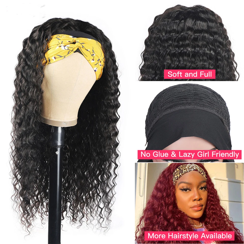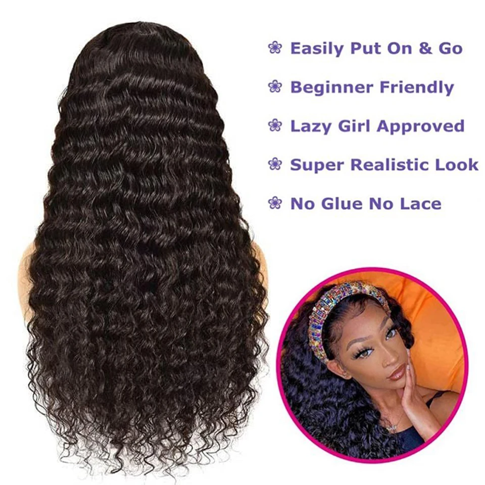 Nicelight перуанские волосы парик с головной повязкой ленточки шарф парик фабричного производства для Для женщин манекен для шарфа парика без клея глубокая волна человеческих волос парики из натуральных волос