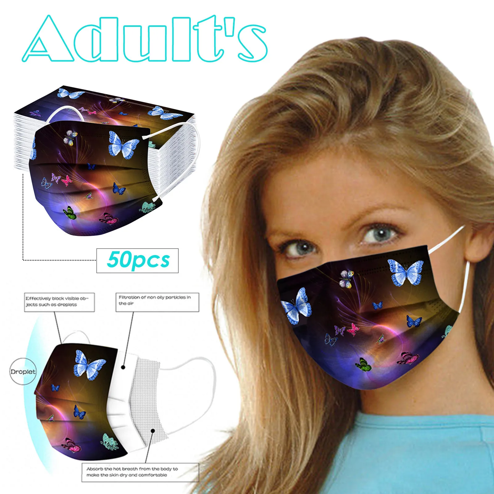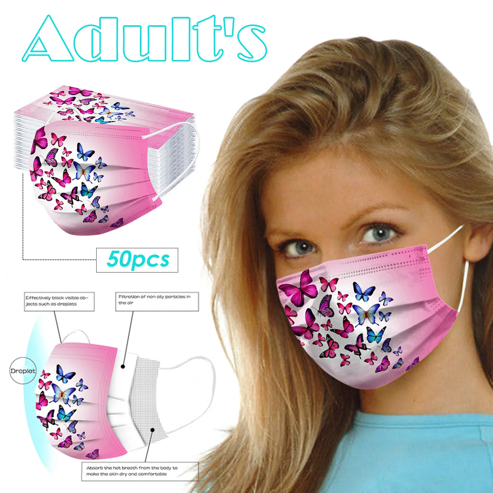 50 шт. взрослых бабочки одноразовые защита три Слои дышащая маска Для Лица Mondkapjes Wasbaar Маски Для Лица Защитные синий