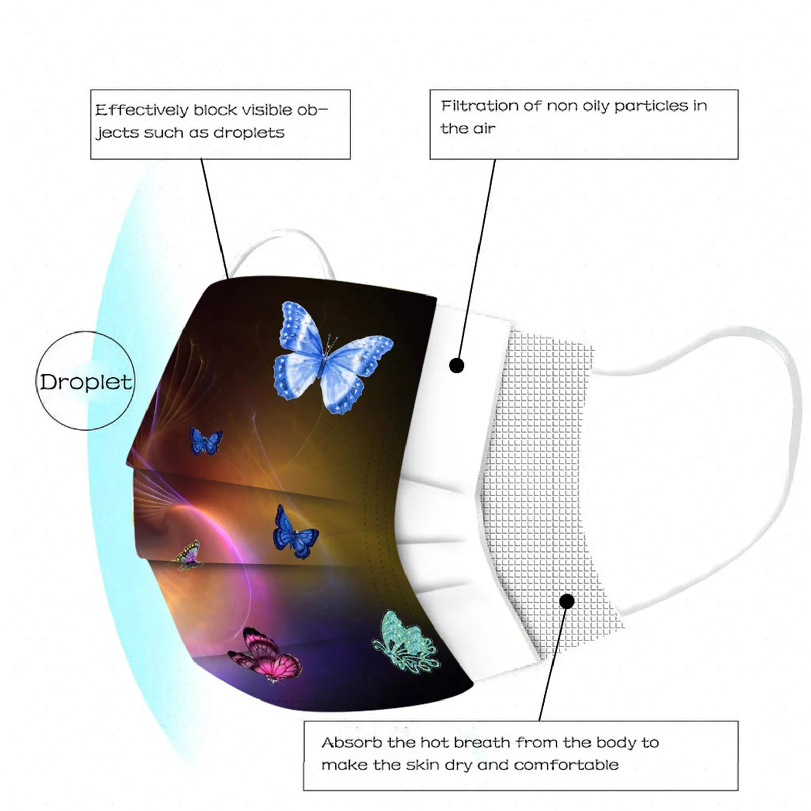 10 шт. одноразовая Защитная дышащая Маска для лица с бабочками для ...