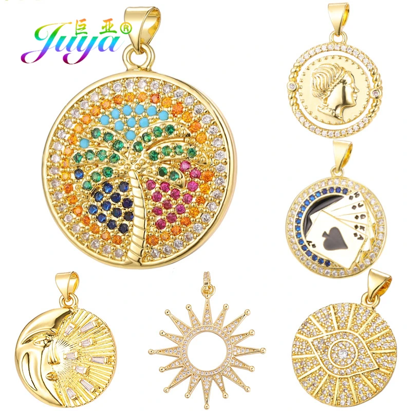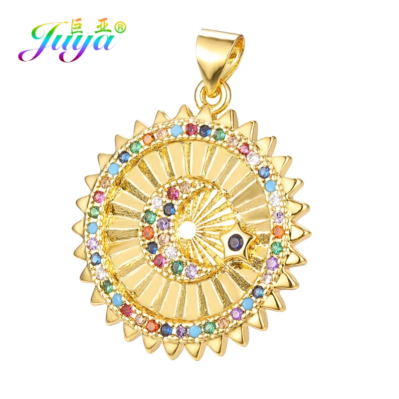 Juya DIY микро паве Радуга Циркон кокосовое дерево елизания Луна Звезда сглаза Подвески для ручной работы Модный кулон для изготовления ювелирных изделий
