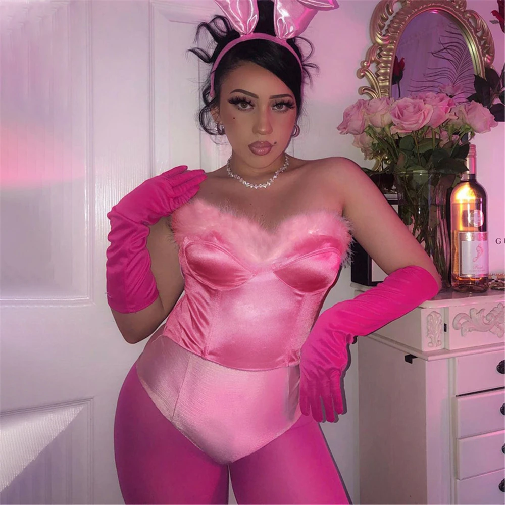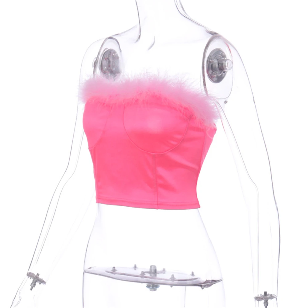 Пикантный женский короткий однотонный розовый жилет без косточек Стильная накидка на шею на грудь тонкая застежка-молния пушистый Женский Топ без бретелек для коррекции фигуры