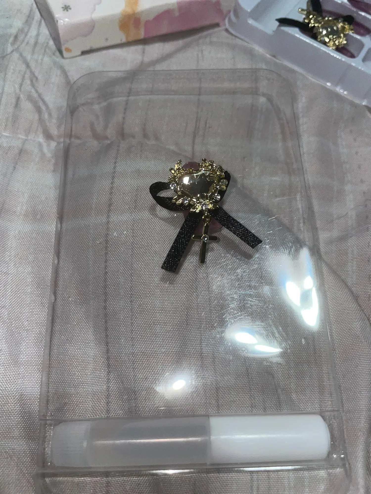 Очень красиво, но слишком ясно, по моему вкусу. Он даже поставляется с клеем для ногтей и инструкциями, которые отлично подходят! В комплекте только один декоративный ноготь-бант :(