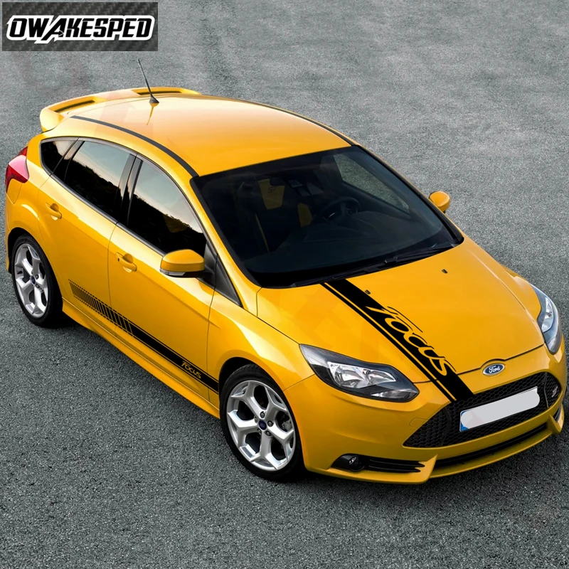 Декоративная наклейка для кузова автомобиля, двери, боковой юбки s для Ford Focus 2 3 MK2 MK3, полосатая наклейка на капот автомобиля, спортивные полосы, виниловые наклейки