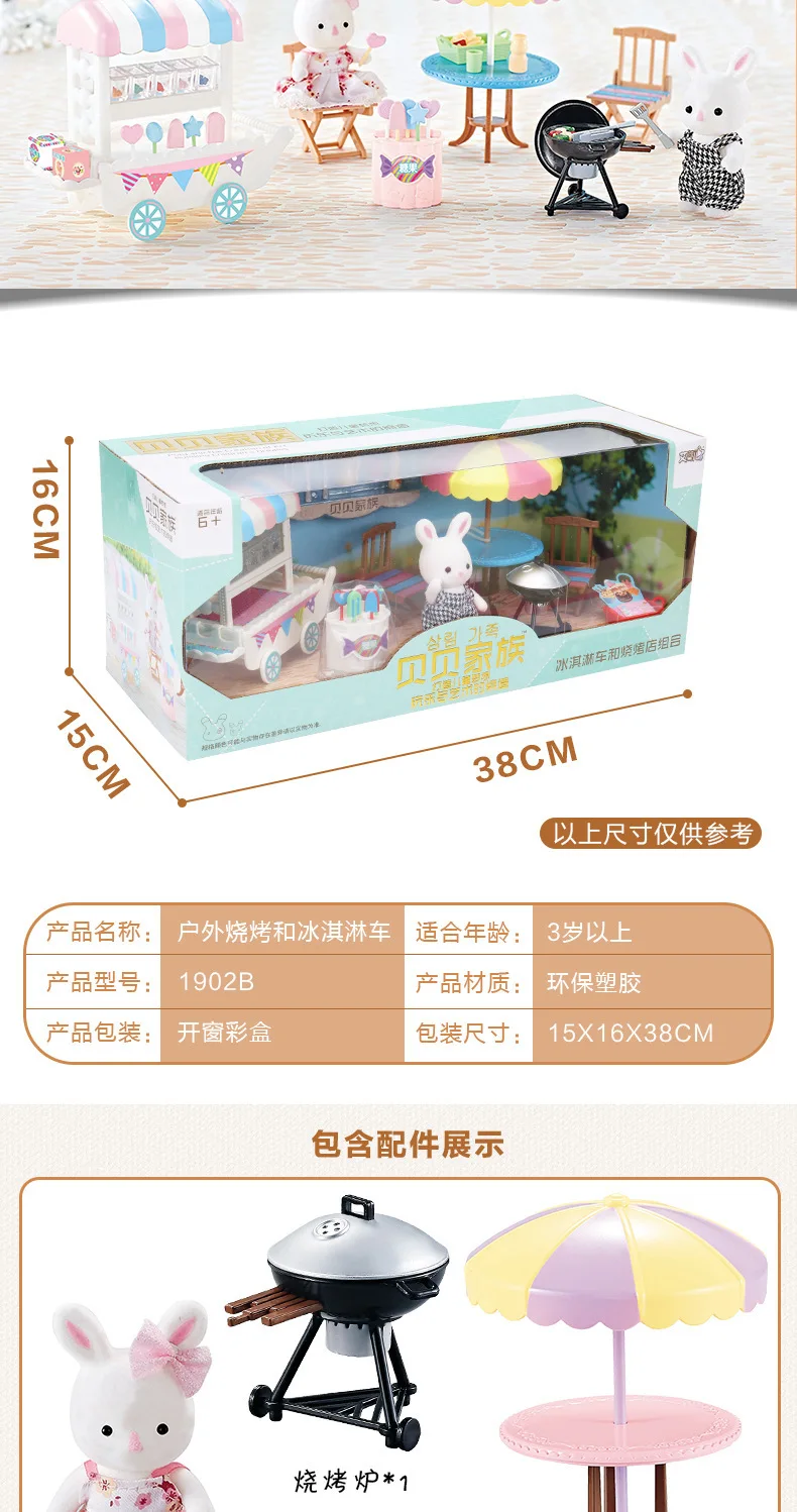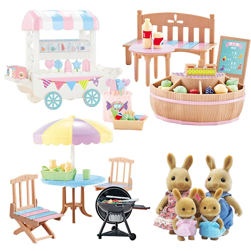 1:12 Кукла-тележка для мороженого с мебелью, ролевая игрушка для девочки, игрушка для барбекю на открытом воздухе, лесное животное, семейный кролик, подставка для фруктов