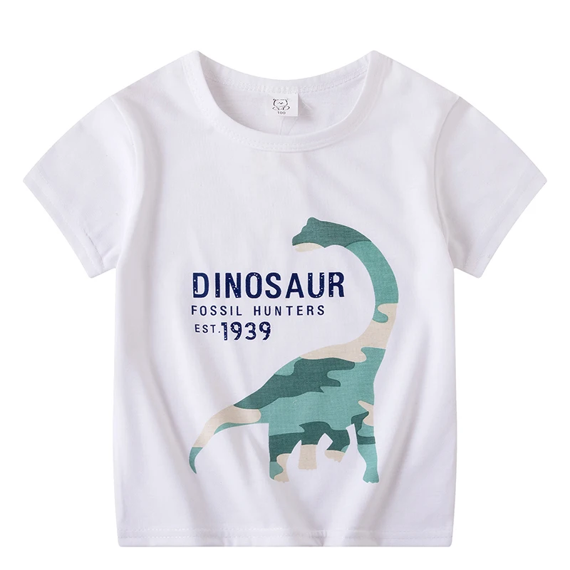 Новинка 2021, футболки с коротким рукавом для мальчиков, детская одежда, одежда для мальчиков, белые футболки, детские хлопковые топы, одежда с мультяшным динозавром для дизайна