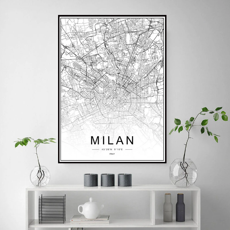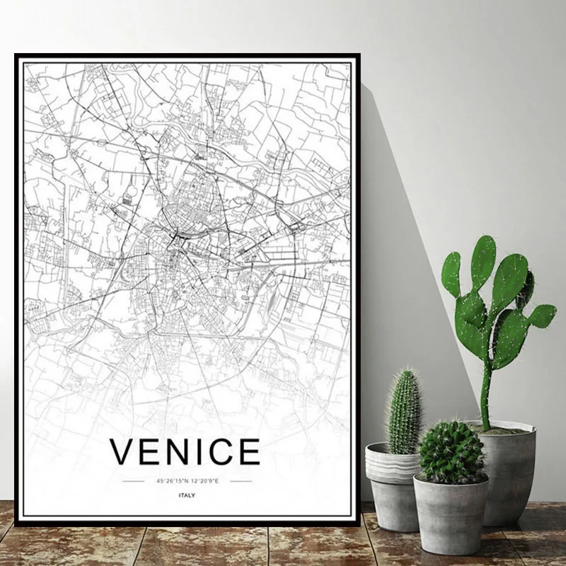 Итальянская Миланская Флоренция Венеция карта римского города печатная живопись Черно-белая гравировка минималистский художественный постер для декора стен комнаты