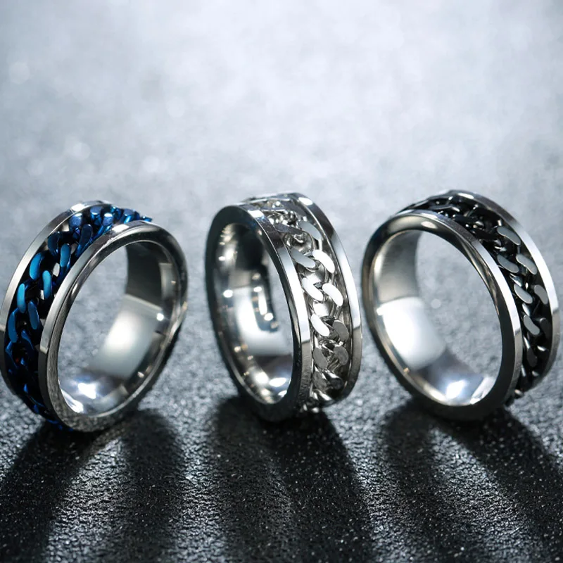 Крутое вращающееся кольцо из титановой стали для мужчин и женщин, крученая цепочка высокого качественный Спиннер в стиле панк, Подарочная бижутерия для вечерние