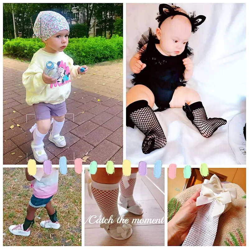 Носки для девочек, хлопковые, дышащие, черные, белые, с большим бантом, От 0 до 3 лет