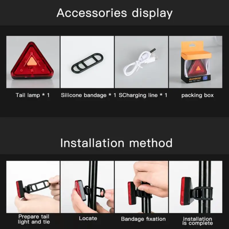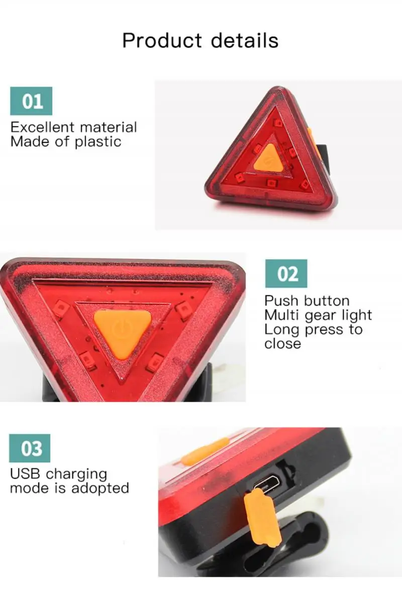 Новый велосипедный светильник, водонепроницаемый задний светильник светодиодный USB Перезаряжаемый горный велосипед, велосипедный светильник, треугольный Предупреждение ющий светильник, хит продаж