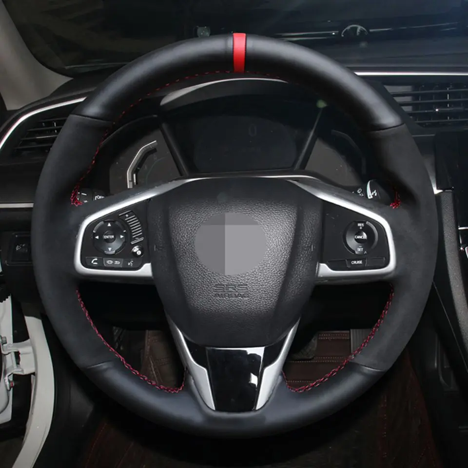 Для Honda Civic 10 2016-2019 CRV CR-V 2017-2019 четкость DIY черная замша натуральная кожа чехол рулевого колеса автомобиля