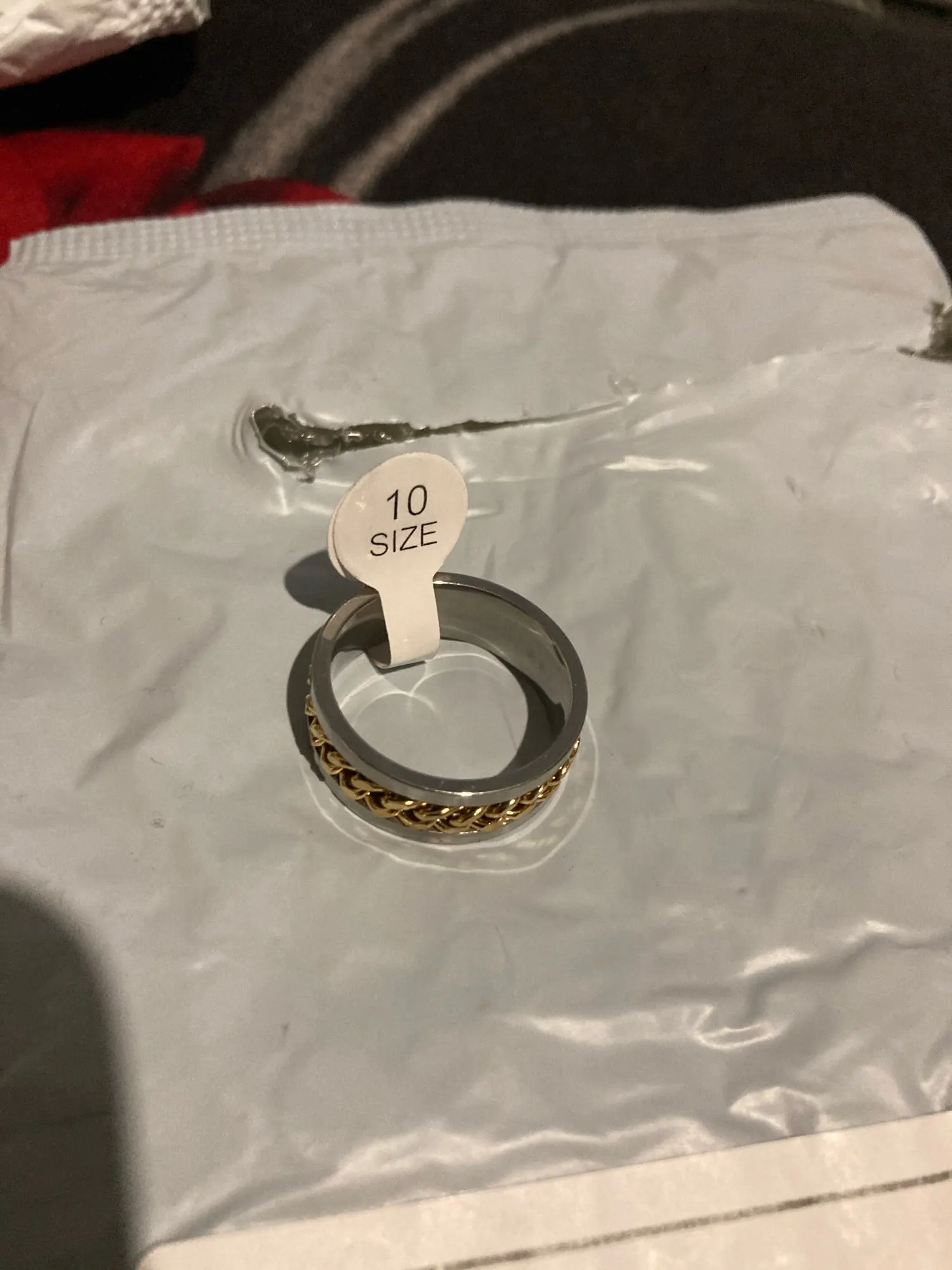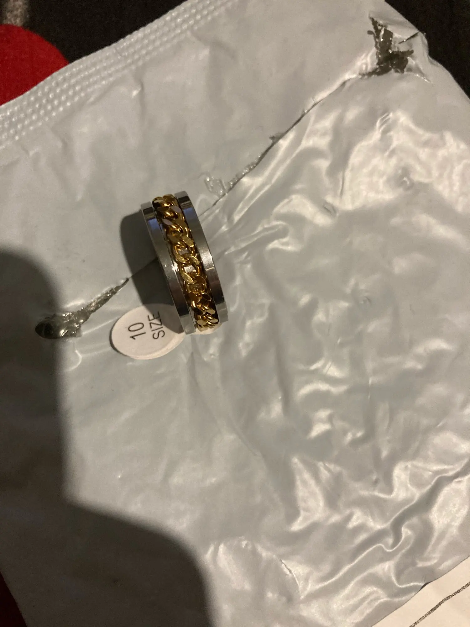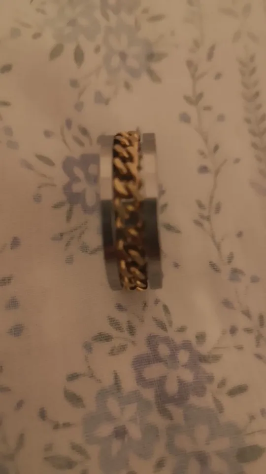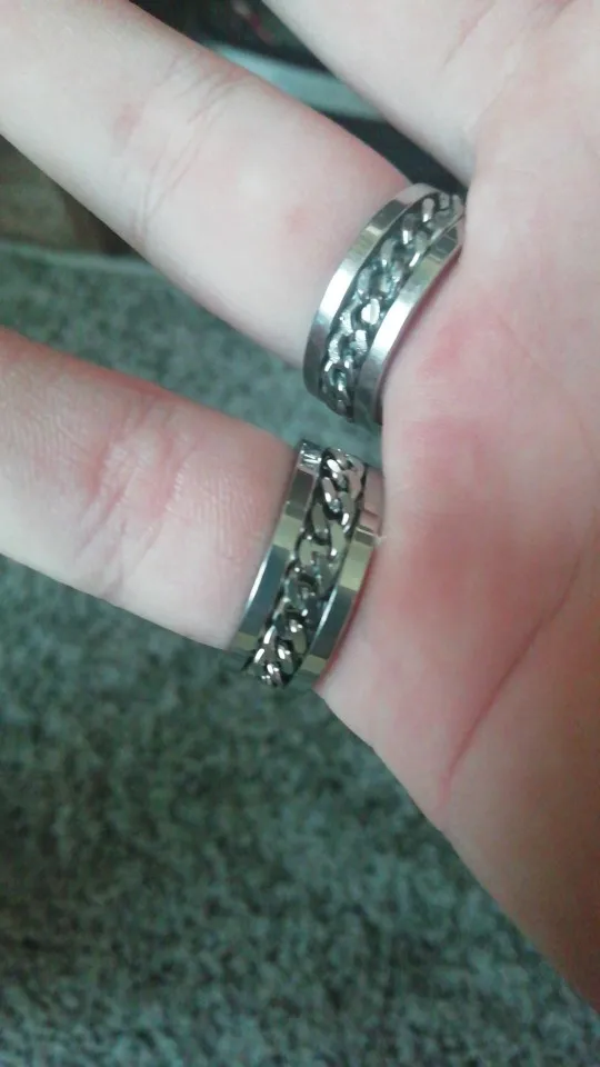 Вращающиеся кольца цепи, полученные 29/04/2021, в то время как доставка была запланирована на 06/06/2021, очень быстрая доставка, Я заказал подгузник размером 9, он действительно слишком мал для моих повреждений пальцев руки, цепь хорошо вращается.