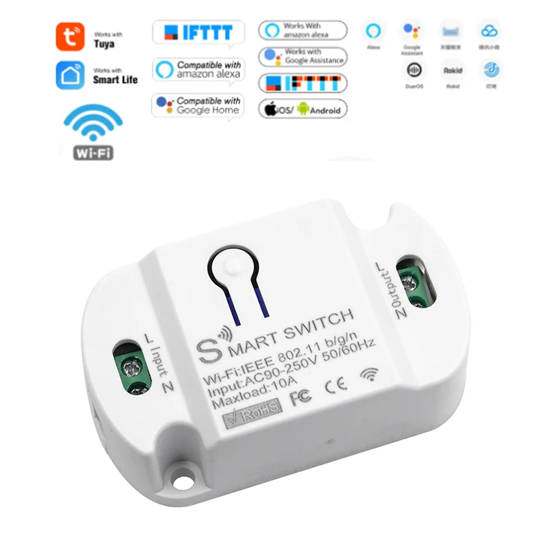Wi-Fi-переключатель для Tuya Smart life, 10 А, приложение для автом...