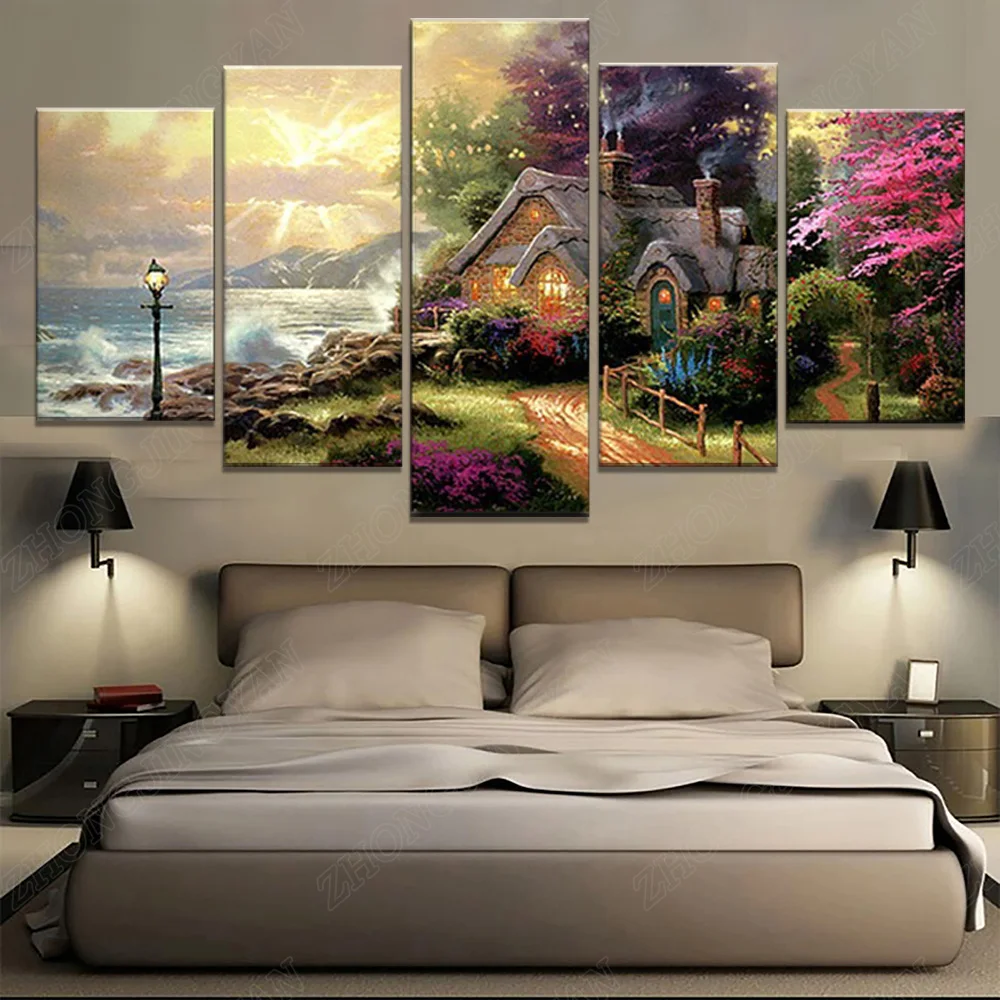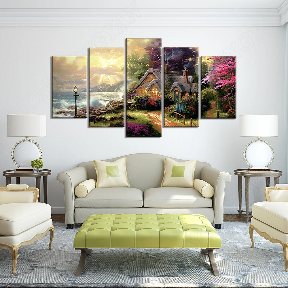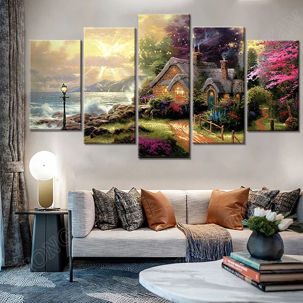 Настенная картина на холсте, модульная Современная рамка для гостиной, 5 панелей, морская волна, коттедж, классическая картина маслом, HD печать