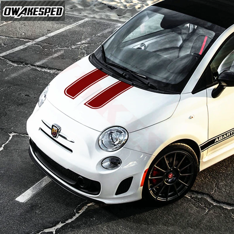 Cat укладки капот Спорт в полоску в наличии для Fiat 500 гонки виниловые наклейки на авто двигатель крышка Декор Стикеры аксессуары
