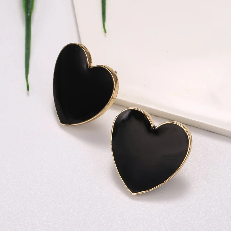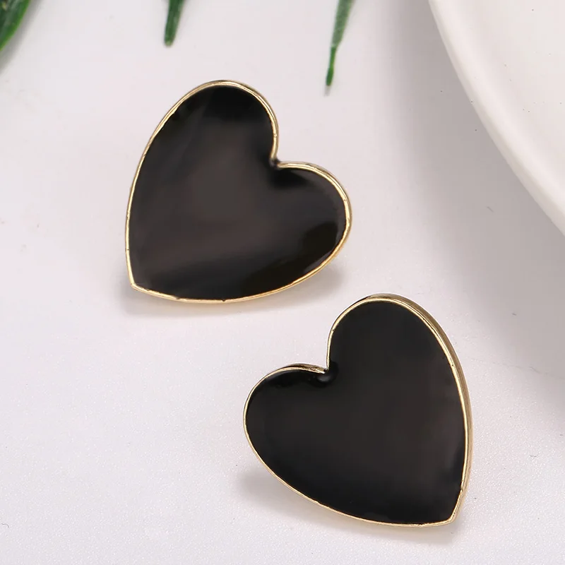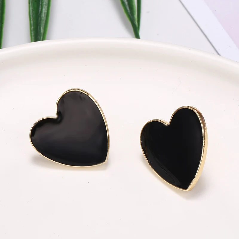 Большие серьги-гвоздики с эмалью в форме сердца для женщин, черные, масляные, золотые, уличные, модные ювелирные изделия, эффектные серьги-гвоздики с сердечками, Подарки Для Подружек