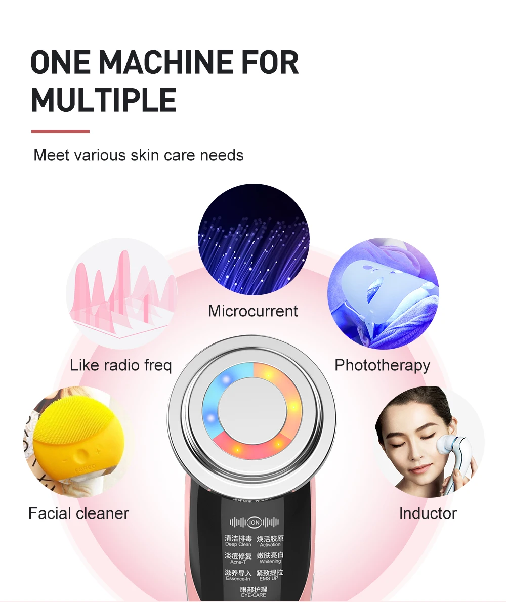 7 в 1 RF мезотерапия ЭМС Электропорация лифтинг красота светодиодный фотон кожа лица + нано ионный парогенератор для лица Глубокая очистка черных точек