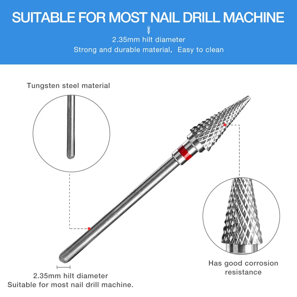 Алмазноевольфрамовое сверло для ногтей, электрическое маникюрное сверло для фрезы, пилочки для ногтей, буферное оборудование для дизайна ногтей, аксессуар