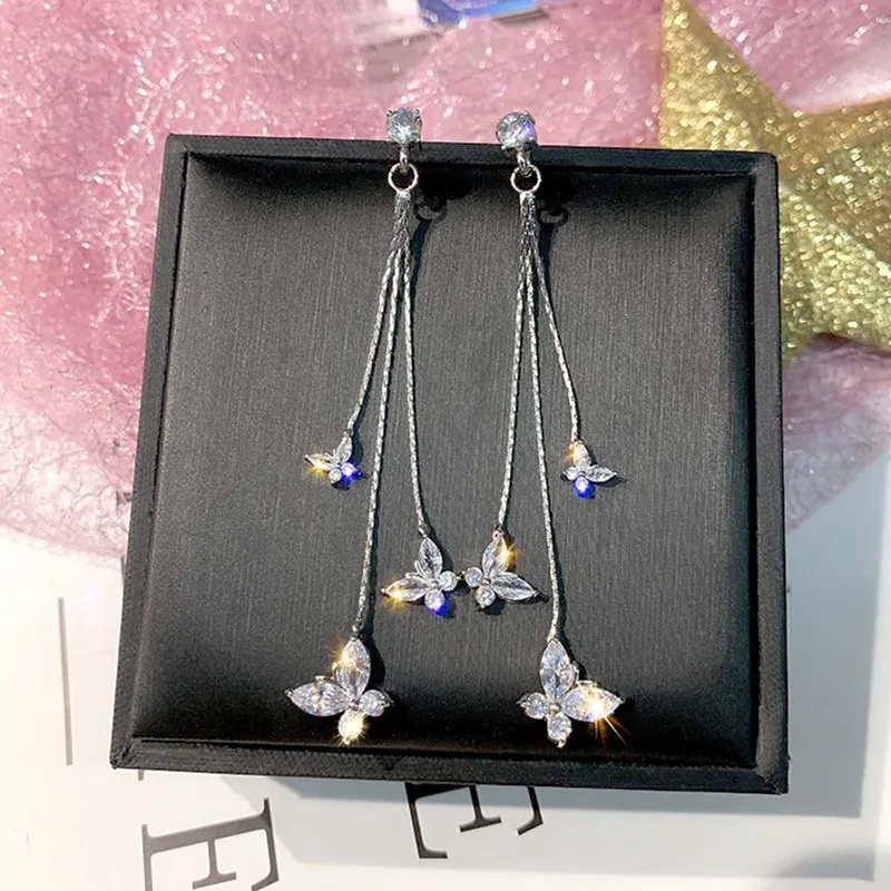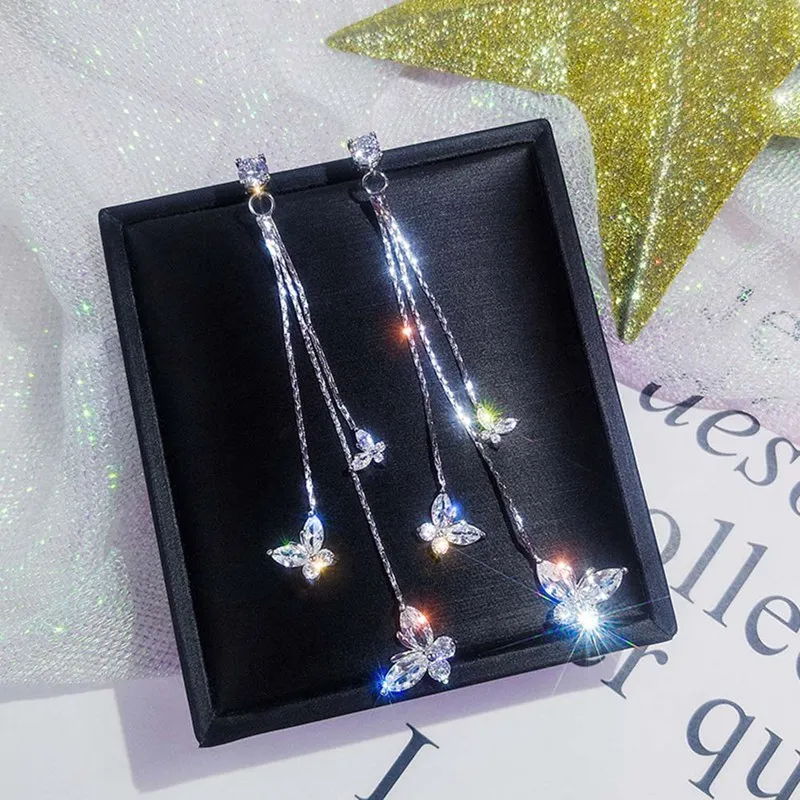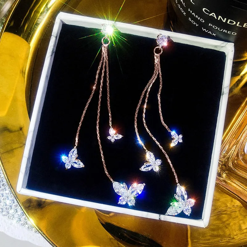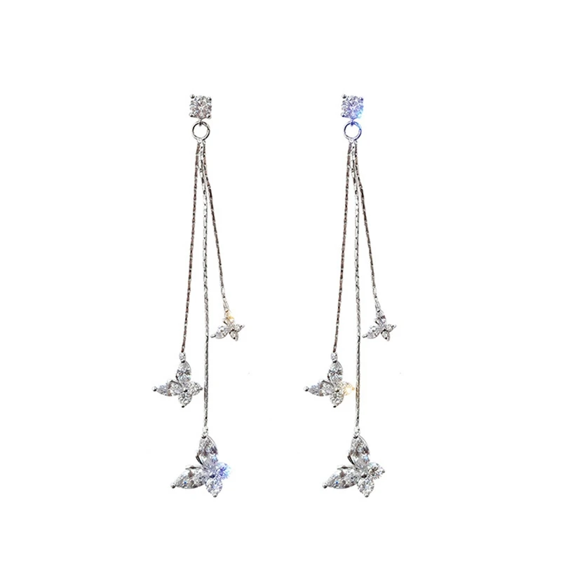 Блестящие висячие серьги три бабочки с кристаллами для женщин бижутерия Длинная кисточка, цепочка висячие серьги Эффектные серьги Ювелирные изделия Подарки