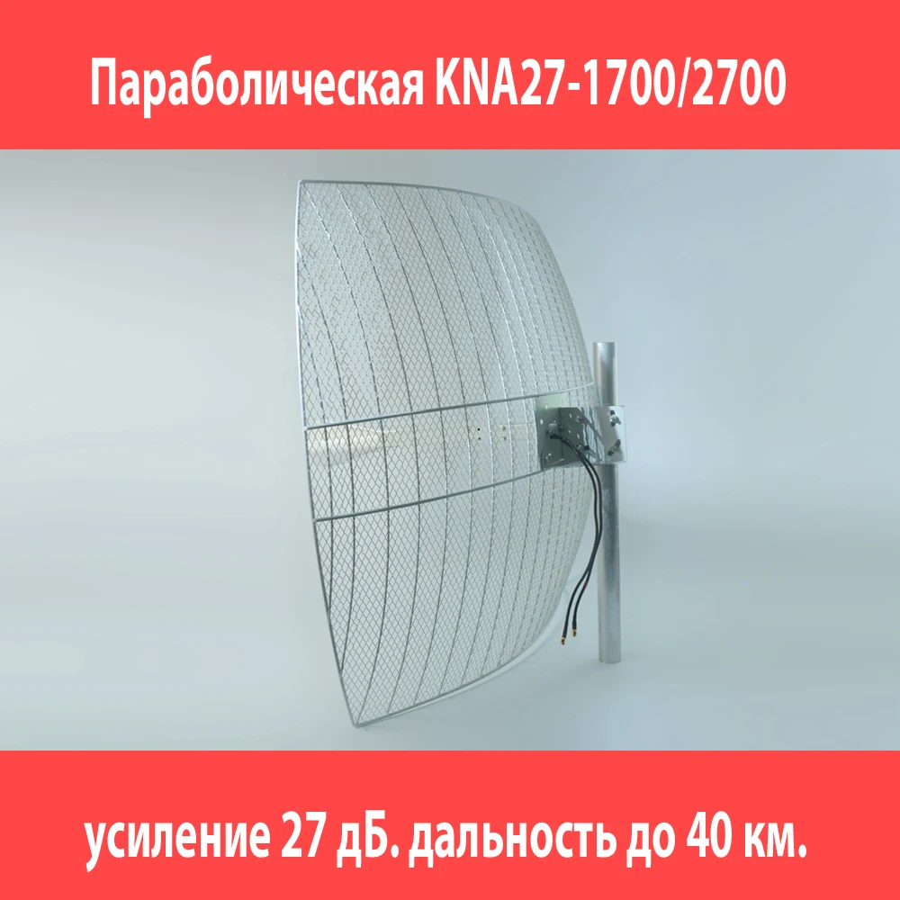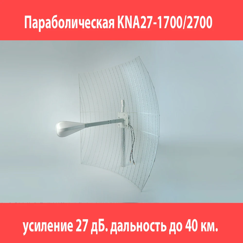 Параболическая антенна KNA27-1700/2700предназначена для организации беспроводного канала передачи данных в диапазоне частот 1700-2700 МГц и усиления мобильного сигнала стандартов GSM 1800, 3G (UMTS 2100), 4G (LTE 1800, LTE 2600), YOTA, Wi-Fi 2400 в местах неуверенного приема.