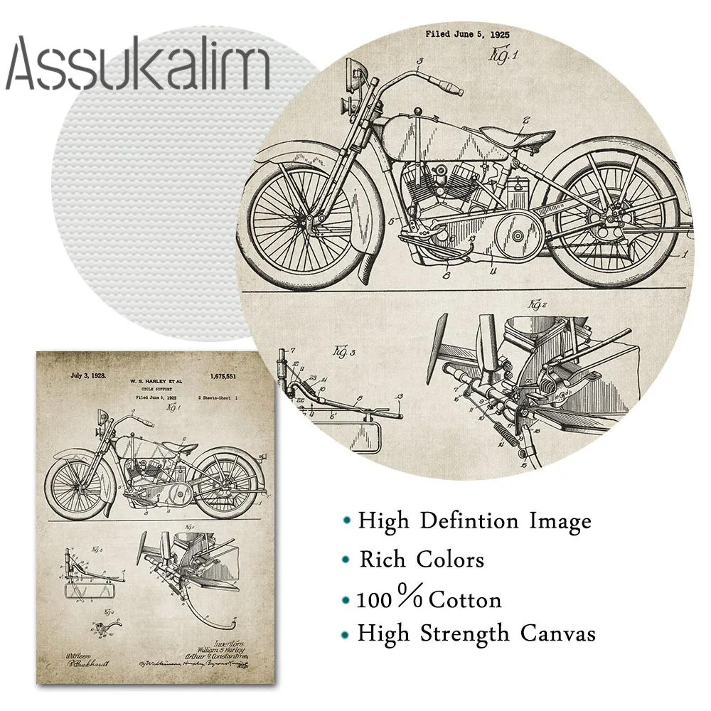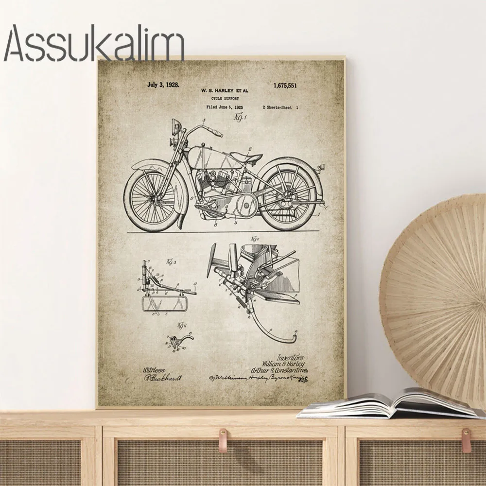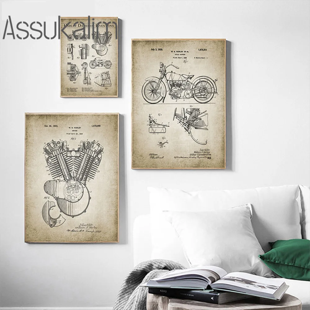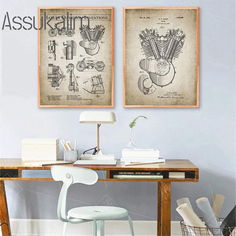 Патент картина часть мотоцикла настенный художественный принт механического двигателя холст винтажный настенный плакат картинки для Гостиная украшения
