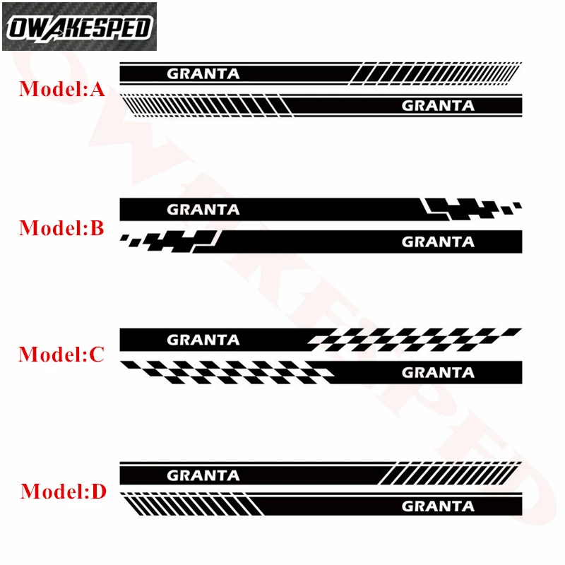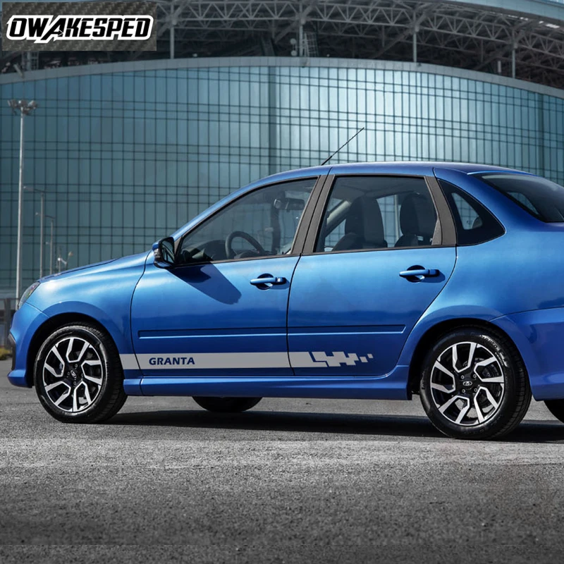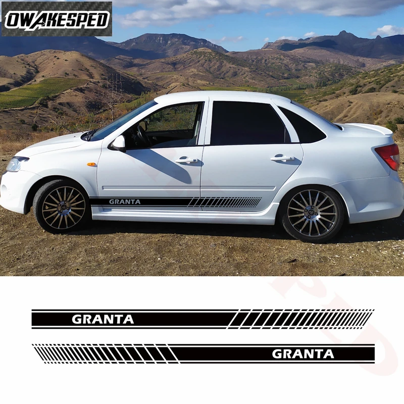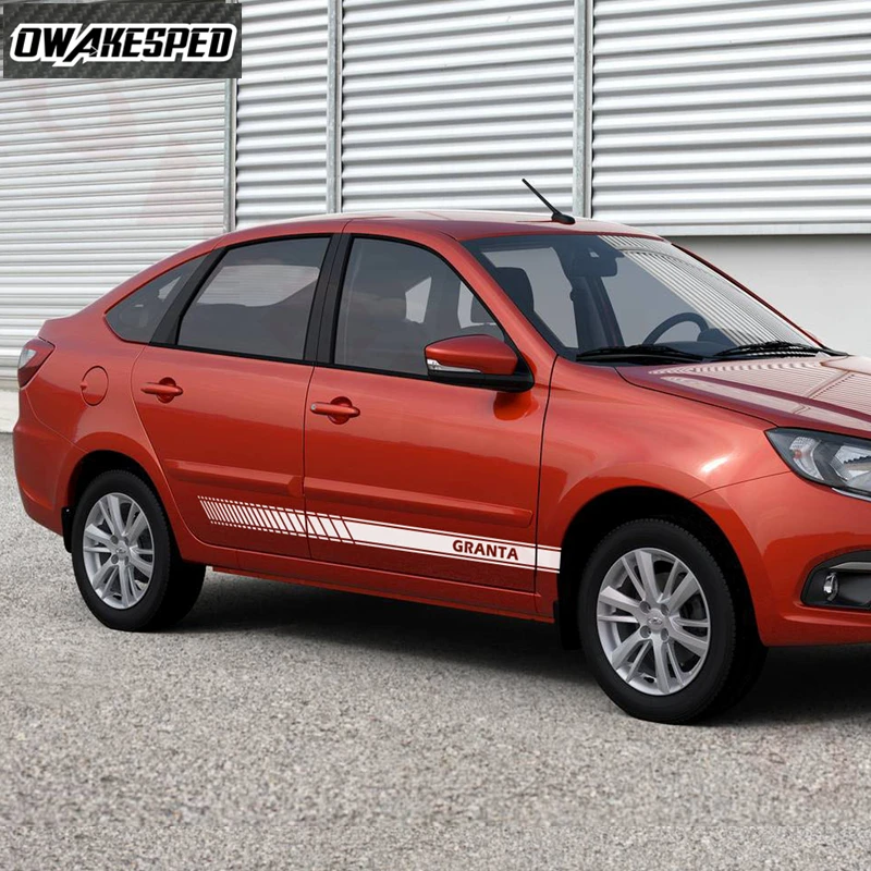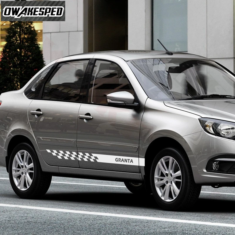 2 шт., наклейки на дверь, боковую юбку для Lada Granta Racing Sport Stripes, Виниловые Наклейки для декора кузова автомобиля