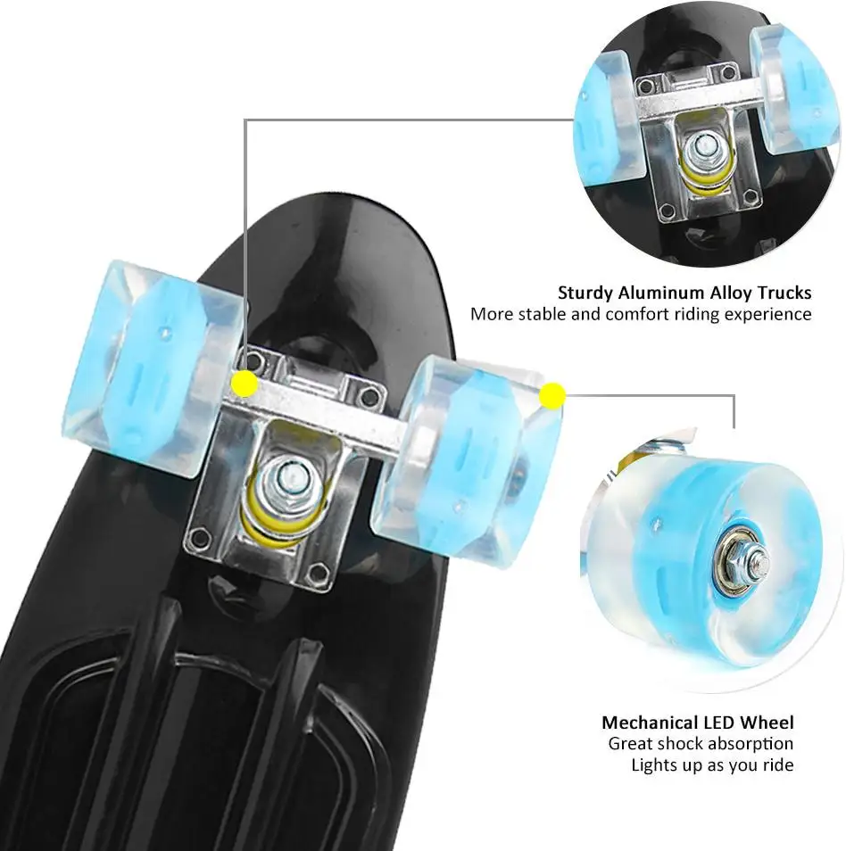 Четырехколесный мини-Лонгборд, 22 дюйма, пастельный цвет, скейтборд с мисветильник Том, скейтборд со светодиодными мигающими колесами, ретро-скейтборд