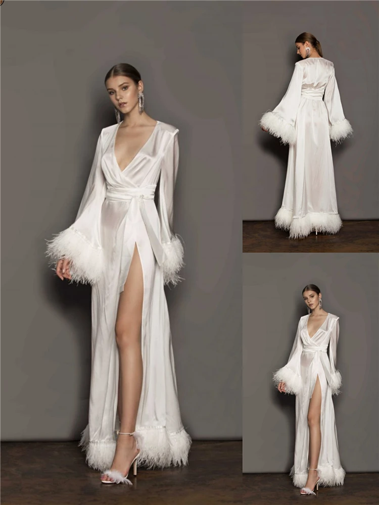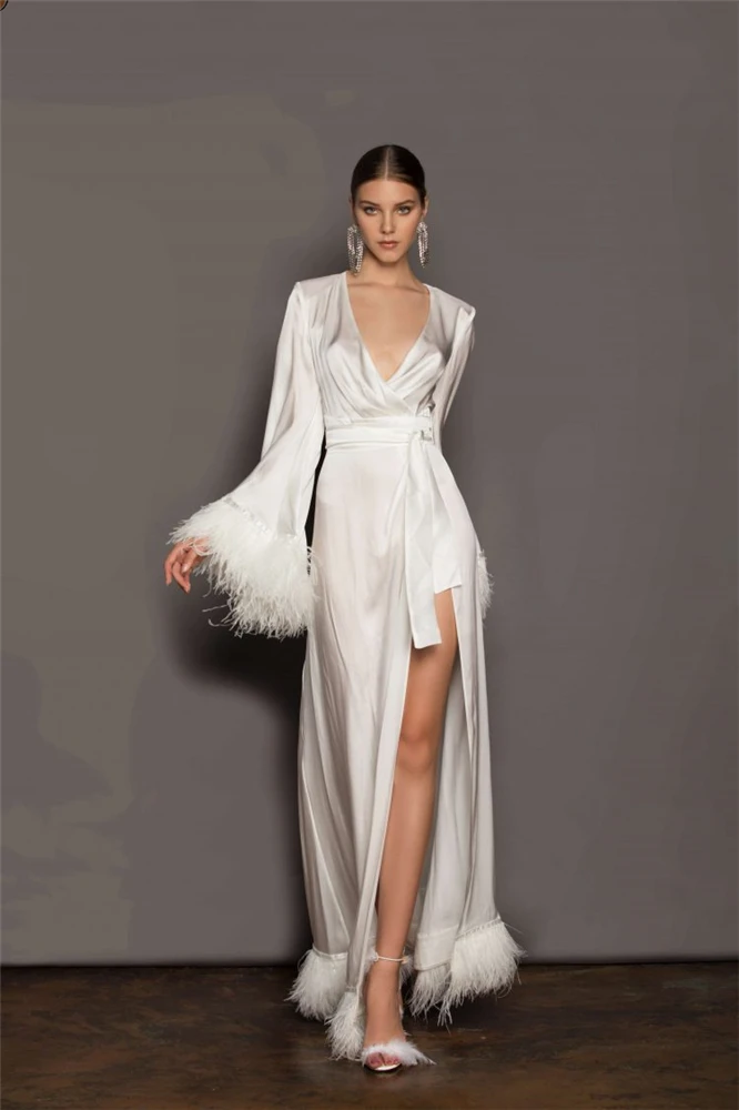 Женский гладкий и удобный халат с поясом-кушаком