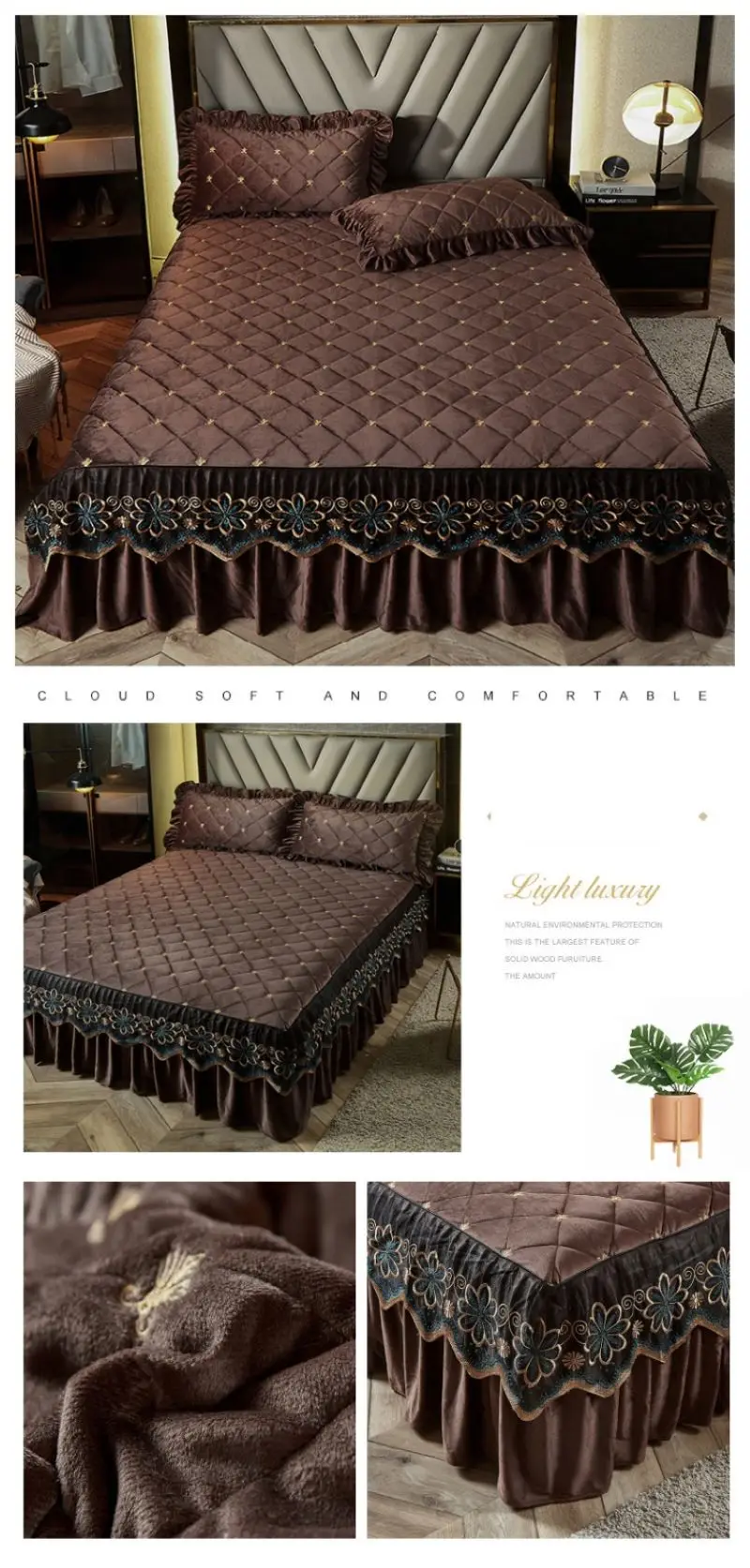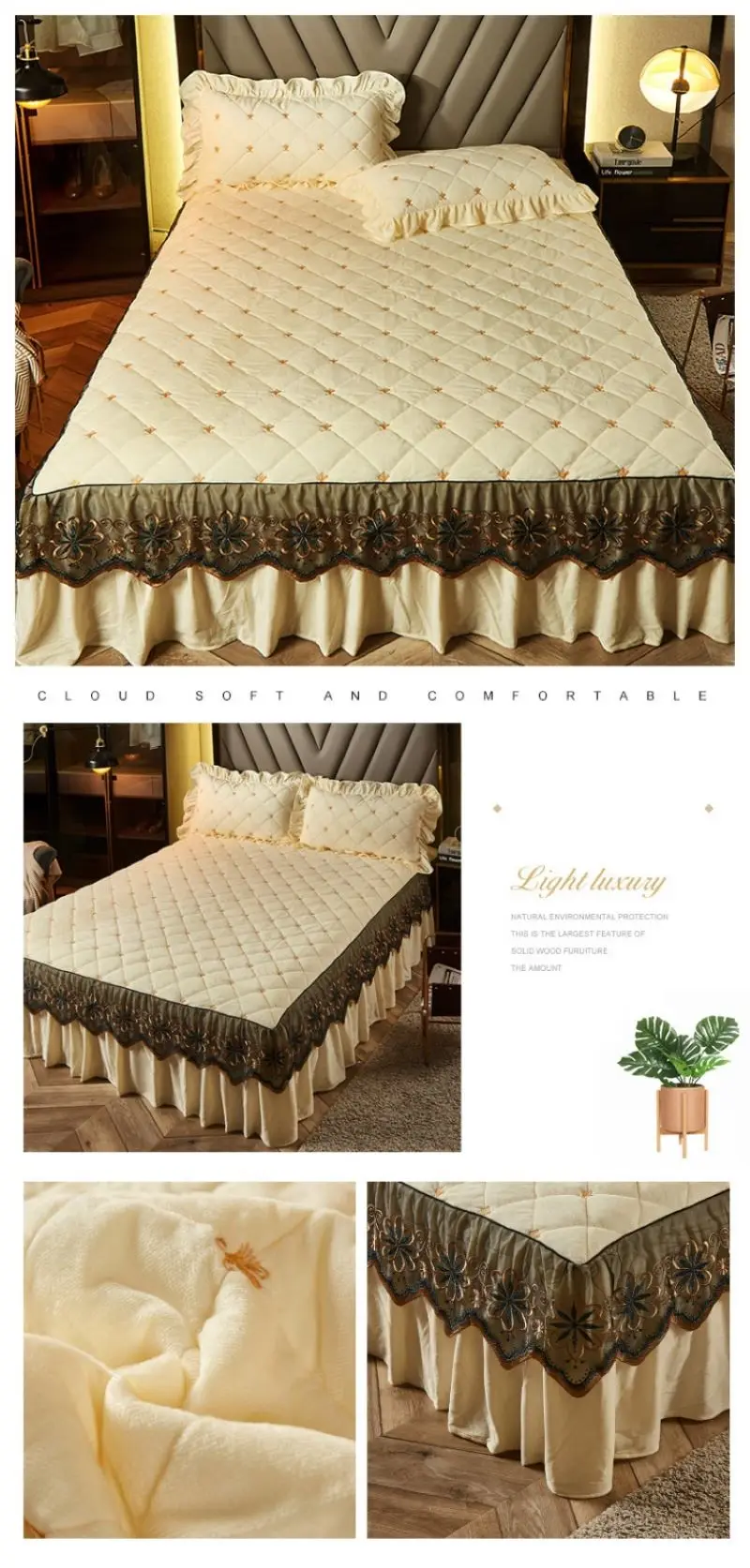Покрывало с вышивкой, плюшевое, стеганое, зимнее, с наволочкой
