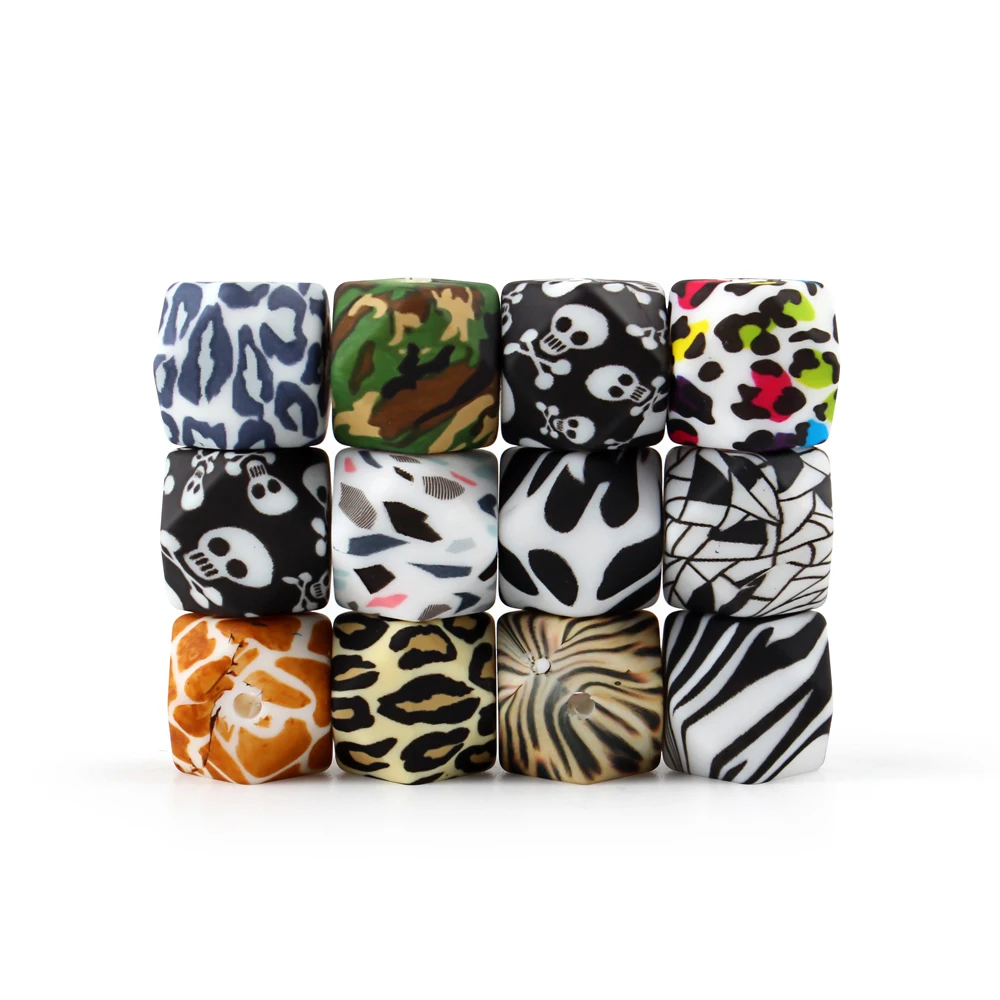 10 шт., шестигранные силиконовые бусины 14 мм с леопардовым принтом