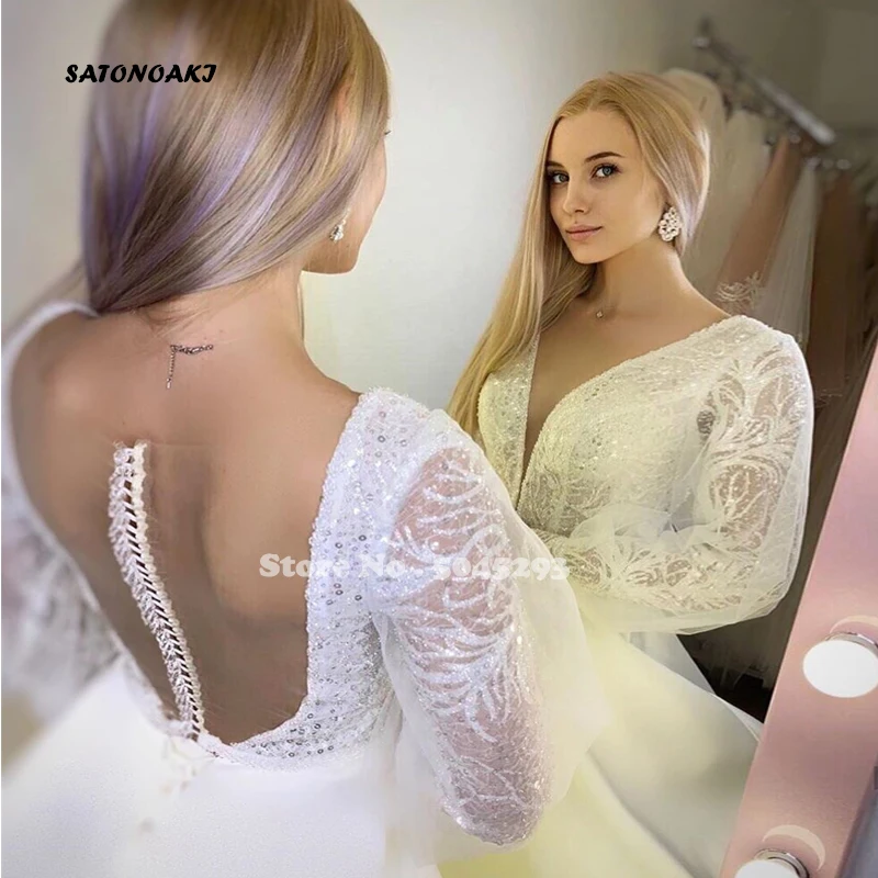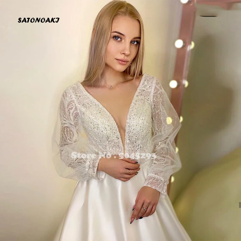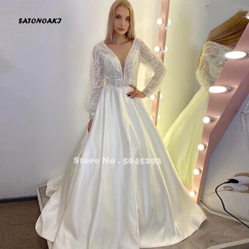 Блестящие Свадебные платья с V-образным вырезом, блестящие свадебны...