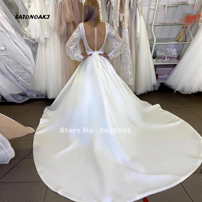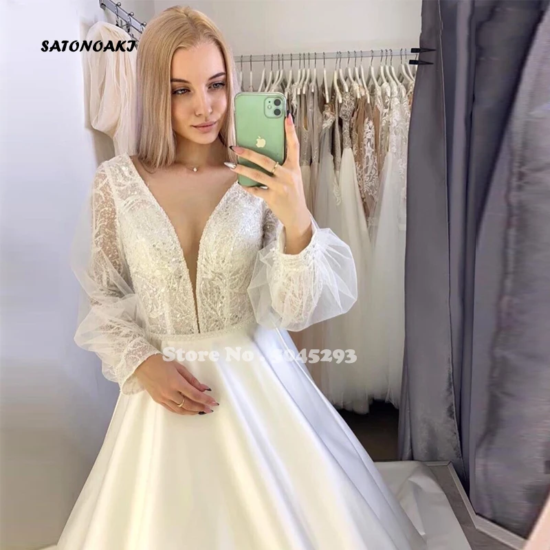 Женское атласное свадебное платье, ТРАПЕЦИЕВИДНОЕ ПЛАТЬЕ С Рукавом ...