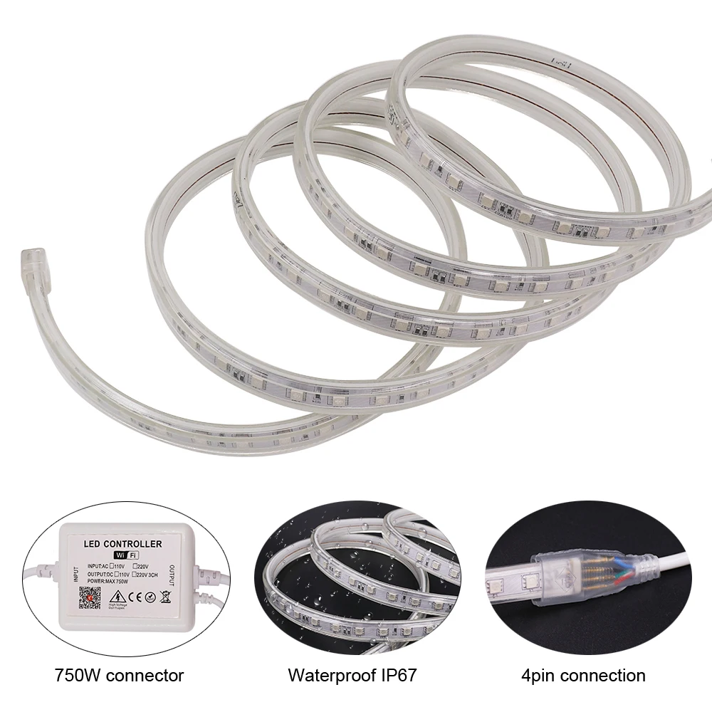 Светодиодная лента 5050 с Wi-Fi, 220 В, 110 В, RGB, 60 светодиодов,...