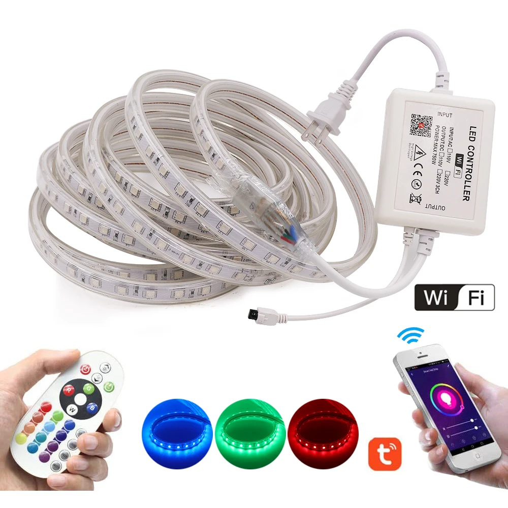 AC 220 В 110 В 5050 светодиодный ленточный светильник RGB WIFI 24ke...