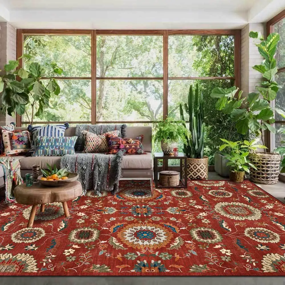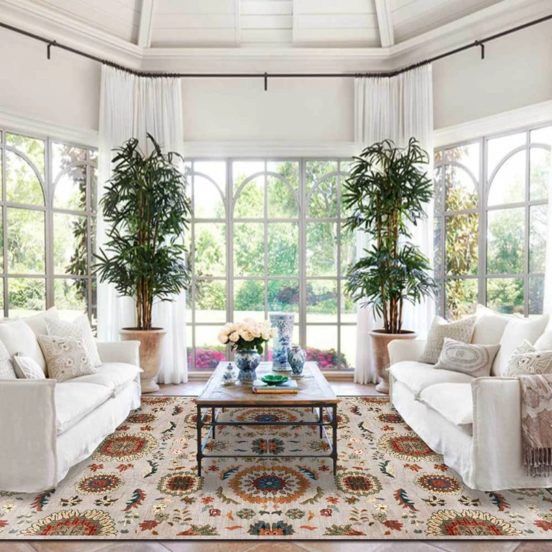 Ковер для прихожей в американском стиле с геометрическим цветочным принтом, Нескользящие Коврики для гостиной, кухни, ванной, прикроватный напольный коврик для спальни