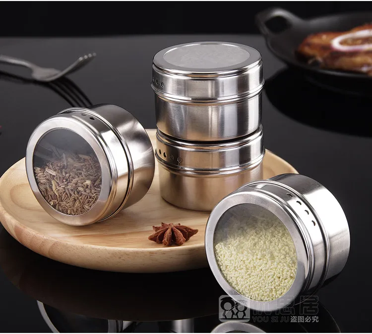 6 шт., банки для специй из нержавеющей стали с магнитными банками