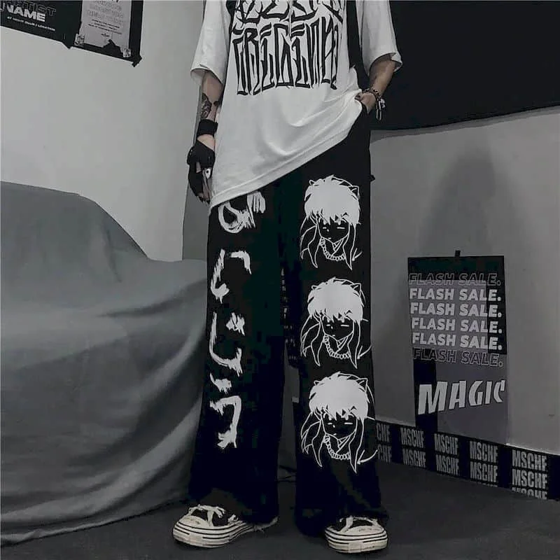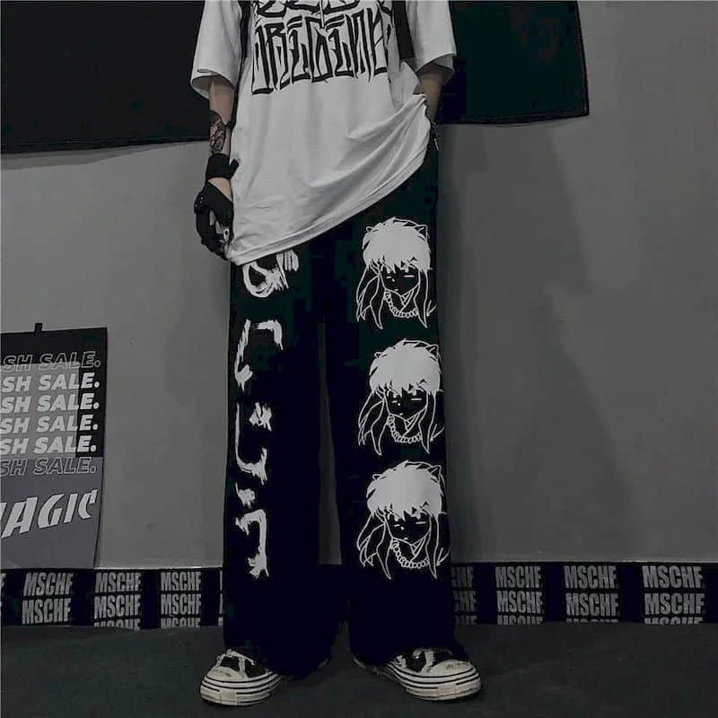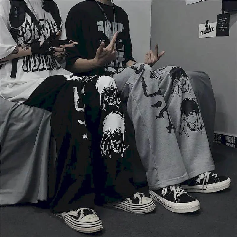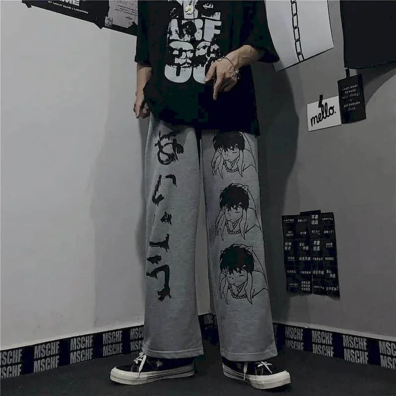 Брюки мужские и женские повседневные для студентов, корейские зимние свободные прямые широкие штаны с мультяшным аниме-рисунком для модных парней
