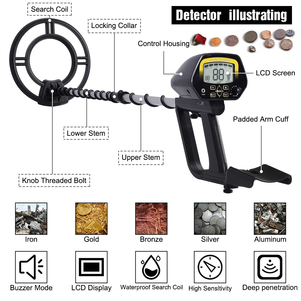 Профессиональный металлоискатель, подземный металлодетектор с регулируемой MD-4060