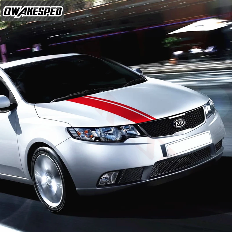 Наклейки на крышку автомобильного двигателя, декор капота автомобиля, виниловые наклейки, гоночные спортивные полосы для-KIA Forte, хэтчбек, седан, аксессуары