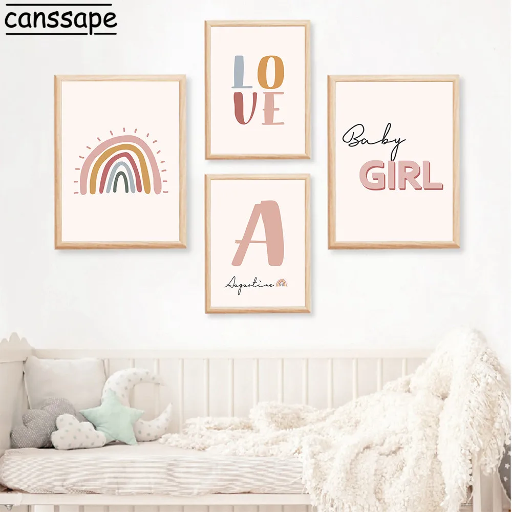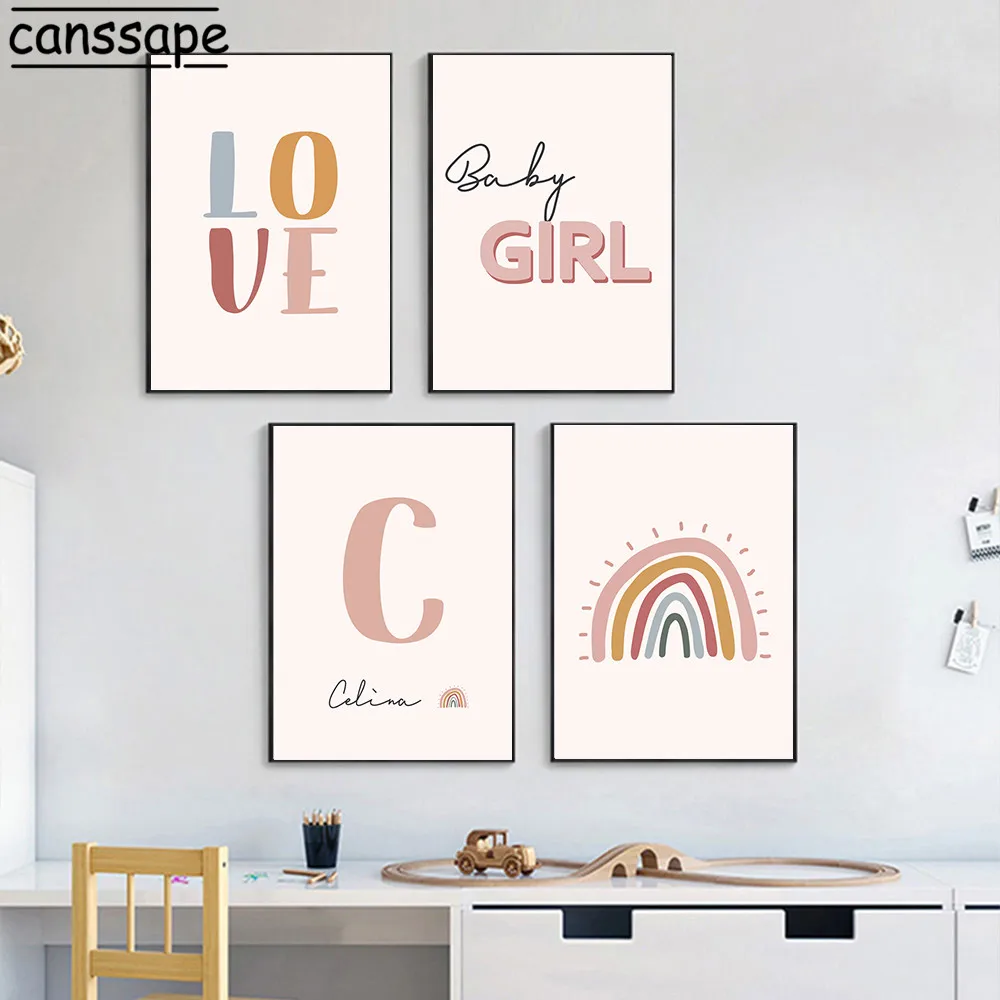 Любовь плакат для маленьких девочек Детская Wall Art Холст Картина пользовательское имя с узором в виде радуги Boho Плакаты Nordic фотографии детской Комнаты Настенный декор